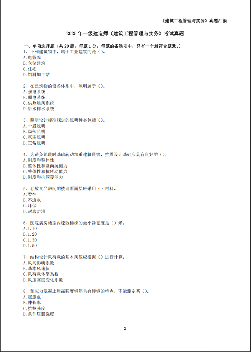 - 一级建造师《建筑工程管理与实务》真题汇编(2020-2025) 2025-11-05